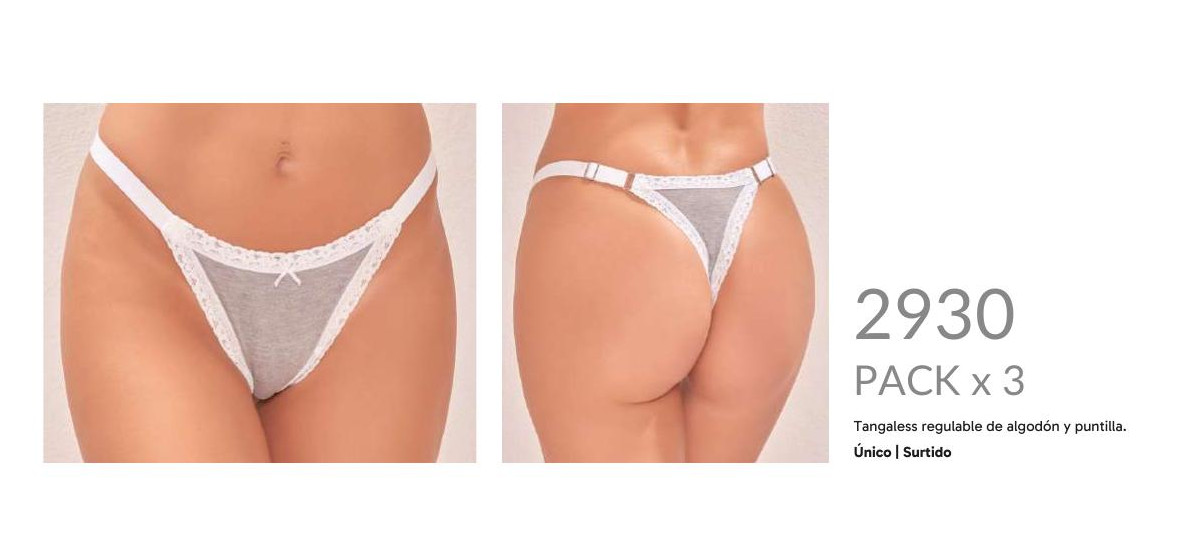 PACK X3 TANGA LESS REGULABLE DE ALGODON Y PUNTILLA